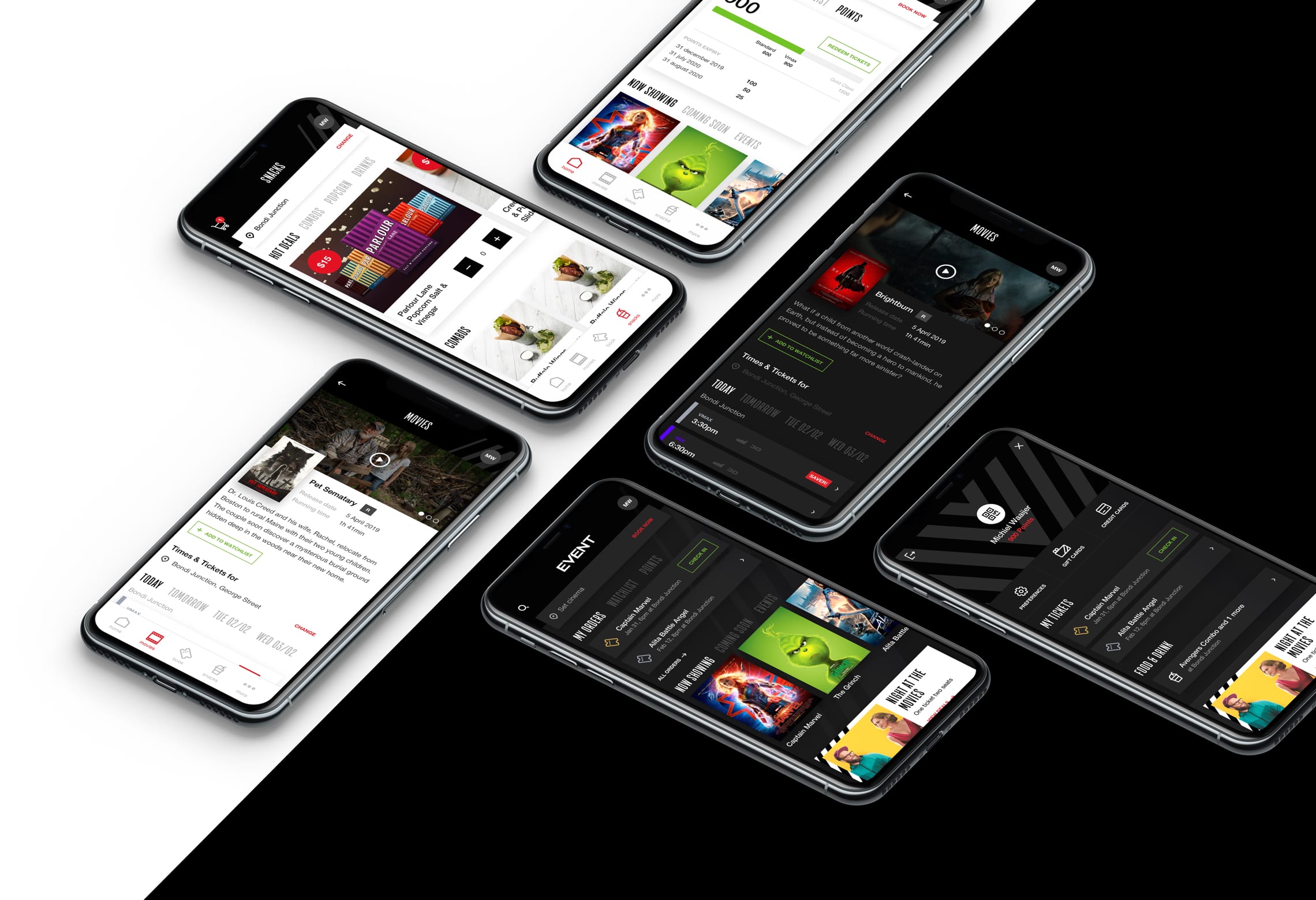 Rock Solid stelde ons de vraag om voor Event Cinemas de gehele visuele uitstraling aan te pakken van de Event App. Het doel van de app is om de bezoeker van de bioscoop op weg te helpen met een aantal toptaken tijdens hun bezoek.