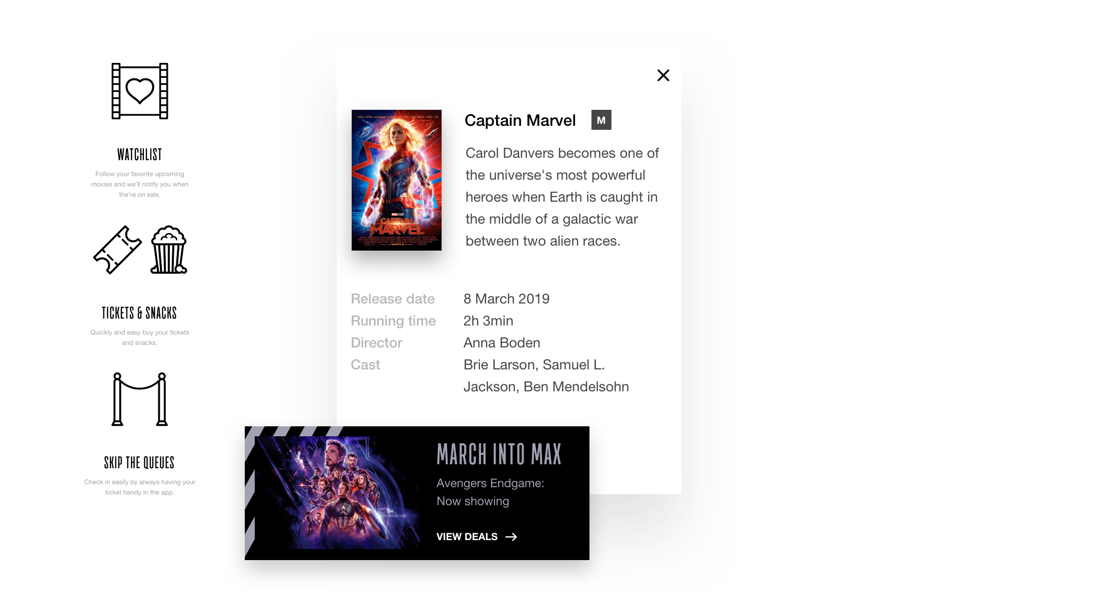 De app kan worden gebruikt voor, tijdens en na het bioscoopbezoek. Gebruikers kunnen een watchlist van favoriete films opstellen, kaartjes kopen en inchecken. Wanneer ze in de zaal zitten bestellen ze in een handomdraai snacks en drinks. Bij elk bezoek ontvangen ze punten op hun Event App account waarmee voordelen voor een volgend bezoek kunnen worden unlocked.
